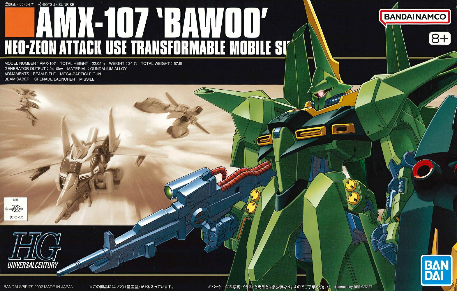 バンダイスピリッツ HGUC 1/144スケール 機動戦士ガンダムZZ 【バウ 量産型】 新品・未開封品 「機動戦士ガンダムZZ」に登場する「バウ量産型」のプラモデル。 最大の特徴である変形・合体をMS形態を崩すことなく再現できます。 バウアタッカーも、変形後のフォルムそのままで再現できます。武器はビームライフル、シールドが付属します。